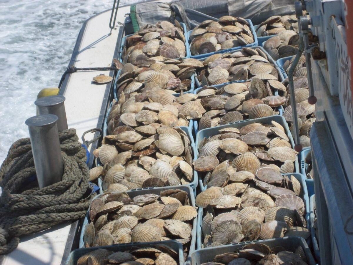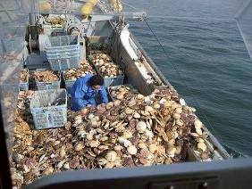 漁が終わると、家族総出でホタテの手入れ。貝殻についたフジツボや汚れを一枚一枚丁寧に取り除きます。その後、生簀で砂出しを行い、貝を落ち着かせてから出荷。